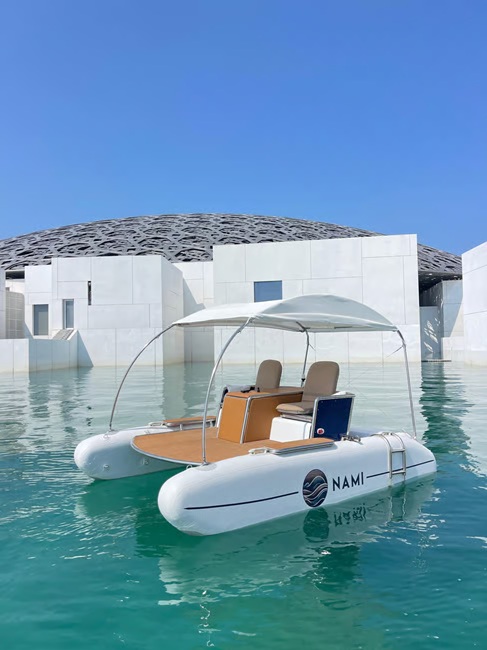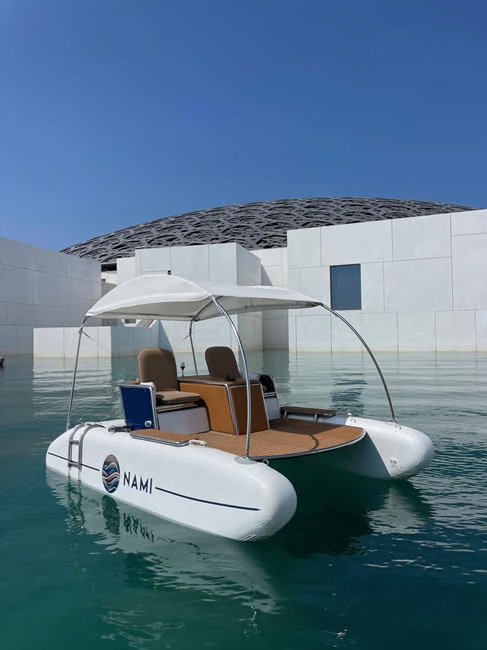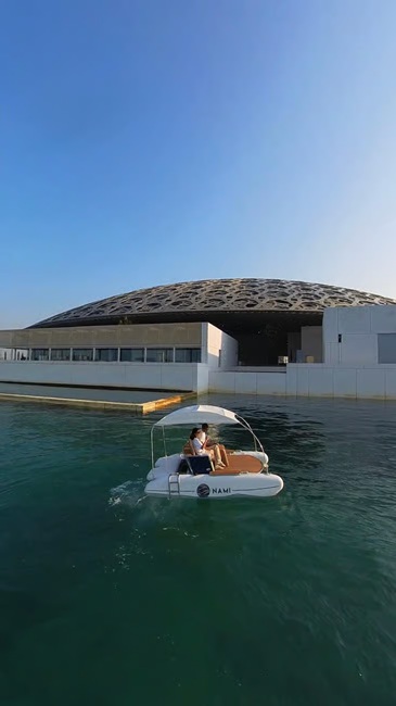 Your journey begins at the marina next to the Louvre Abu Dhabi, where a brief orientation introduces you to the easy-to-use joystick controls—no boating experience needed. Glide effortlessly across the water at your own pace, enjoying a smooth, silent cruise with panoramic views of the museum’s striking architecture and the shimmering Arabian Gulf. Stay cool and comfortable under the custom sunshade and ventilated canopy, with onboard lighting creating a safe and inviting atmosphere for both daytime and evening outings.