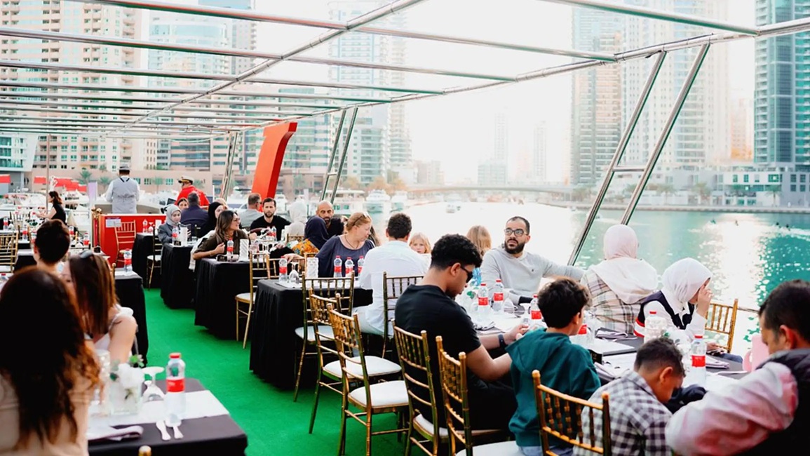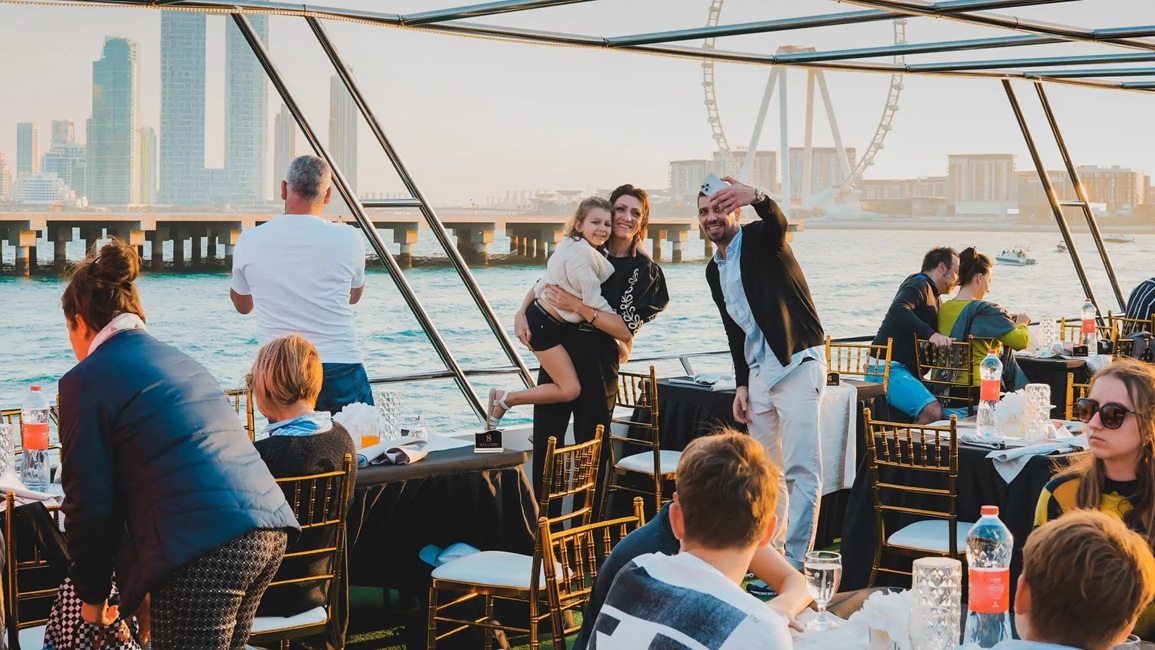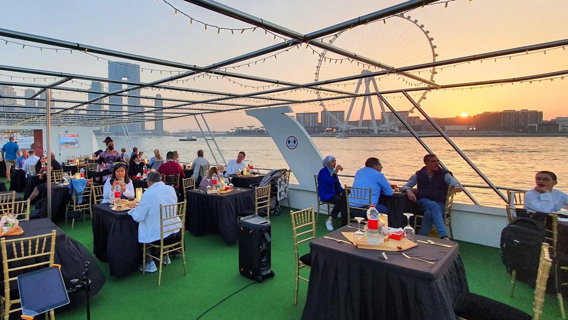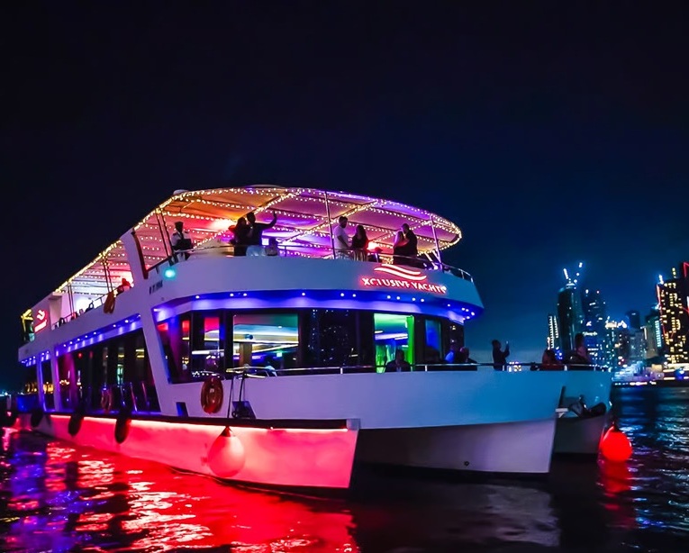 This cruise offers more than just a meal; it’s a complete sensory journey. From the shimmering skyline reflected on calm waters to the refined ambiance and flawless service, every detail is designed to make your evening special. Whether you’re celebrating a romantic occasion, enjoying a night out with friends, or treating your family to a memorable Dubai experience, this dinner cruise is the perfect choice.