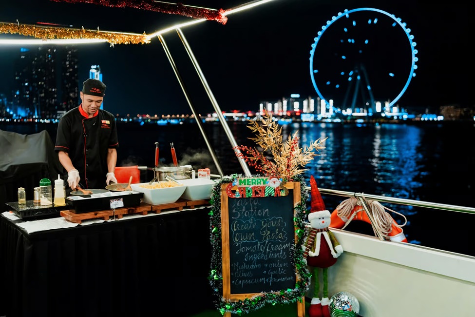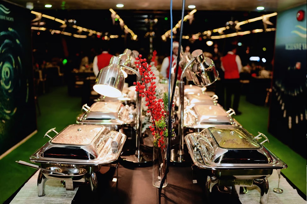 As the yacht glides past Dubai’s most famous landmarks — including Dubai Marina, Dubai Harbour, and the glittering Ain Dubai Wheel — you’ll be treated to a lavish buffet dinner. Savor an array of exquisite dishes blending the best of continental and oriental flavors, all while soft melodic music creates the perfect backdrop for this enchanting evening.